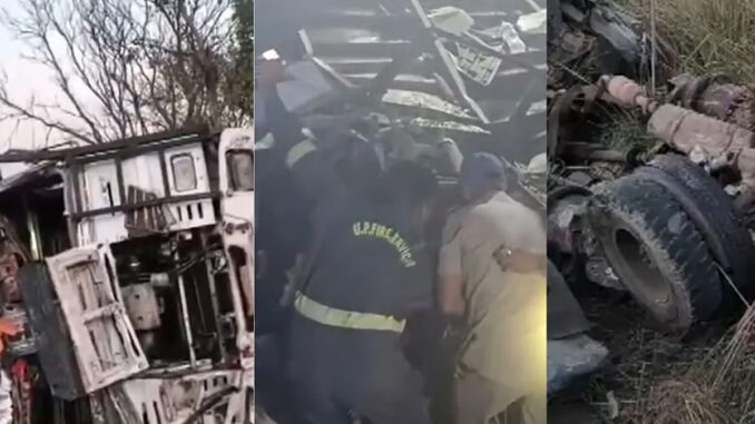 ஹம்பூர் தேசிய நெடுஞ்சாலையில் இன்று அதிகாலை பஸ் சென்றுகொண்டிருந்தது. அப்போது, திடீரென டிரைவரின் கட்டுப்பாட்டை இழந்த பஸ் சாலையில் எதிரே வந்த லாரி மீது மோதியது. இந்த கோர விபத்தில் மணமகனின் தந்தை யூனிஸ் குரேஷி, பஸ் டிரைவர் அசோக் உள்பட 6 பேர் சம்பவ இடத்திலேயே உடல் நசுங்கி உயிரிழந்தனர். மேலும், 10க்கும் மேற்பட்டோர் படுகாயமடைந்தனர்.