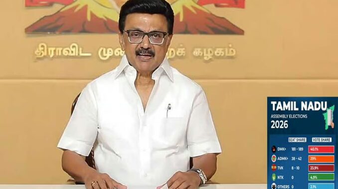இன்று வெளியாகியுள்ள லோக் போல் சர்வே முடிவுகளில் திமுக கூட்டணி 40.1% வாக்கு சதவீதத்துடன் 181 முதல் 189 தொகுதிகளை கைப்பற்றி மீண்டும் ஆட்சியை பிடிக்கும் என்று கணிக்கப்பட்டுள்ளது. பிரதான எதிர்க்கட்சியாக அதிமுக கூட்டணி 29% வாக்குகளைப் பெற்று 38 முதல் 42 இடங்கள் வரை பிடிக்கும் என தெரிகிறது.
