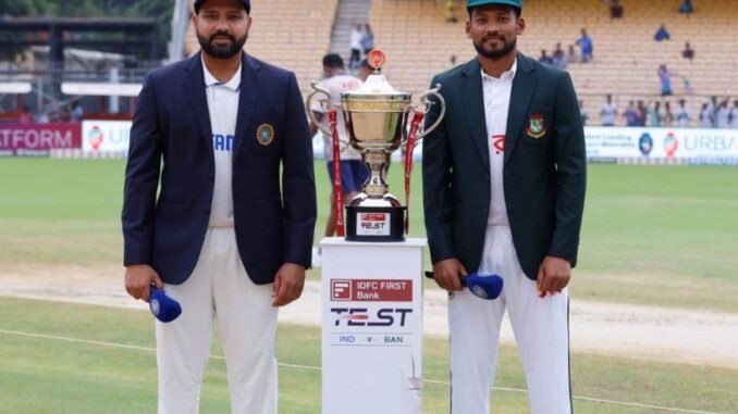 நேற்று தொடங்கிய முதல் டெஸ்ட் போட்டியில் டாஸ் வென்ற வங்கதேச அணி பந்து வீச்சைத் தேர்வு செய்யவே இந்திய அணி பேட்டிங்கில் களம் கண்டது. இந்திய அணியின் நட்சத்திர பேட்ஸ்மேன்களான ரோஹித் சர்மாவும், விராட் கோலியும் 6 ரன்களில் அவுட் ஆக, இளம் நம்பிக்கை வீரர் சுப்மன் கில் டக் அவுட் ஆக இந்திய அணியின் டாப் ஆர்டர் படு மோசமாக வீழ்ந்தது. இந்த நிலையில்தான் ஆல் ரவுண்டர்களான அஸ்வினும், ஜடேஜாவும் சிறப்பான ஆட்டத்தை வெளிப்படுத்தி போட்டிக்கு உயிரூட்டினர். அஸ்வின் சதமடித்து டெஸ்ட் கிரிகெட்டில் தான் ஒரு ஜாம்பவான் என்பதை மீண்டும் நிருபித்தார். இரண்டாவது நாளான இன்று 376 ரன்களுக்கு இந்திய அணி அனைத்து விக்கெட்டுகளையும் இழந்தது. வங்கதேச அணியில் ஹாசன் மஹ்முத் 5 விக்கெட்டுகளை வீழ்த்தியது பேசுபொருளானது.