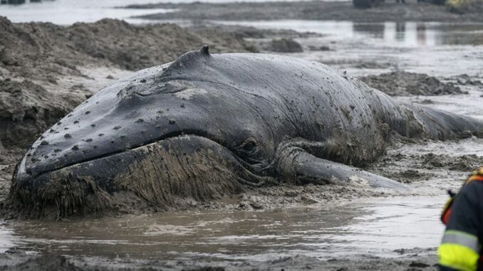 ஜெர்மனியின் விஸ்மார் வளைகுடா பகுதியில் சுமார் 15,000 கிலோ எடையுடைய கூனல் முதுகு திமிங்கலம் சகதியில் சிக்கி உயிருக்கு போராடும் நிலையில் காணப்படுகிறது. இதனை பாதுகாப்பாக மீட்டு அட்லாண்டிக் கடல் நோக்கி திருப்பி விடும் பணியில் மீட்புக் குழுவினர் தீவிரமாக ஈடுபட்டு வருகின்றனர்.