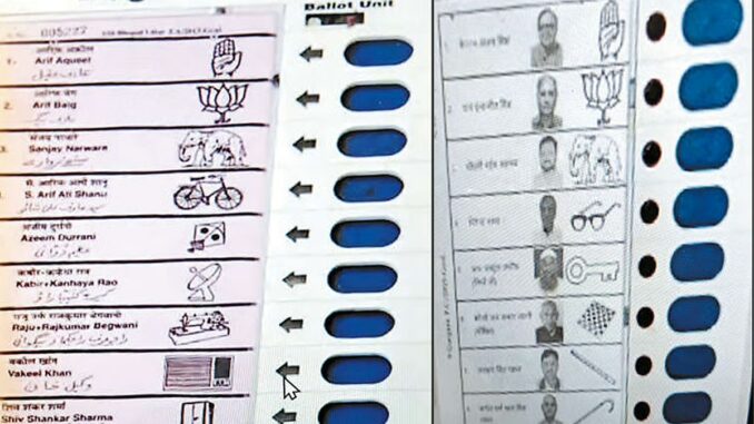 ஒவ்வொரு தேர்தலின் போதும் வாக்கா ளர்களுக்கு வாக்குப்பதிவை எளிமைப்ப டுத்தும் விதத்தில் புது யுத்திகளை தேர் தல் கமிஷன் அறிமுகம் செய்து வருகிறது. இந்த முறை வாக்களிக்கும் இ.வி.எம். எந்திரத்தில் ஒட்டப்படவுள்ள வேட்பாளர் பெயர் சீட்டில் (பேலட் பேப்பர்) வேட்பாளர்களின் புகைப்படங்களையும் அச்சிடுவதற்கு தேர்தல் கமிஷன் முடிவு செய்துள்ளது.