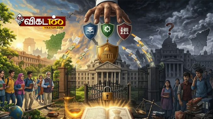 வாக்குறுதிகளில் இலவச அறிவிப்புகளை வாரி இறைக்கிறார்கள். பிரசாரத்தில் அவதூறுகளை அள்ளி வீசுகிறார்கள். ஆனால், தமிழகத்தின் உயர்கல்விச் சூழலையே சிதைக்கும் வகையில் மத்திய அரசு கொண்டு வரவிருக்கிற ஒரு சட்டம் பற்றி இங்கே யாருமே வாய் திறக்கவில்லை. ஏற்கெனவே 10-க்கும் மேற்பட்ட பல்கலைக்கழகங்கள் துணைவேந்தர்கள் இல்லாமல்  பாழ்பட்டு வரும் நிலையில், இப்போது மொத்தமாக உயர்கல்விக் கூடங்களை சட்டப்பூர்வமாக தங்கள் கட்டுப்பாட்டுக்குள் கொண்டு செல்லும் செயலை தொடங்கிவிட்டது மத்திய அரசு. அதற்காக அவர்கள் கையில் எடுத்திருப்பது தான் ‘விக்சித் பாரத் சிக்ஷா அதிஷ்தான்’  (Viksit Bharat Shiksha Adhishthan, 2025) என்ற சட்ட வரைவு.