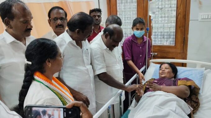 அதிமுக வேட்பாளர் இளமதி சுப்பிரமணியன், ஆடுதுறை பேரூராட்சியில் தொடங்கி கோவிந்தபுரம், வண்ணக்குடி உட்பட 12 கிராமங்களில் வாக்கு கேட்டு பிரசாரத்தில் ஈடுபட்டார். அப்போது வெயில் கடுமையாக அடித்ததால் வெப்பம் அதிகமாக இருந்தது. போகப் போக வெயில் அதிகமானதால் வண்ணக்குடியில், பிரசாரம் செய்துகொண்டு இருந்த இளமதி சுப்பிரமணியன் வெயில் தாங்க முடியாமல் திடீரென மயங்கினார். அங்கிருந்த நிர்வாகிகள் அவரை, ஆடுதுறையில் உள்ள தனியார் மருத்துவமனைக்கு அழைத்துச் சென்று சிகிச்சைக்காக அனுமதித்தனர்.