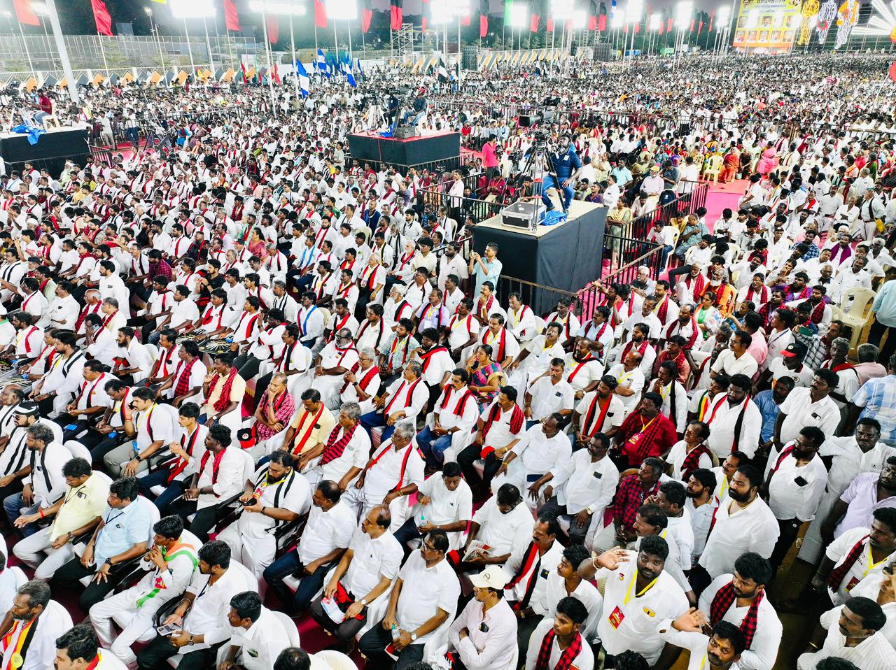 சென்னை அடுத்த மறைமலைநகரில் ஆலந்தூர் வேட்பாளர் தா.மோ.அன்பரசன்உத்திரமேரூர் வேட்பாளர் க.சுந்தர்ஸ்ரீபெரும்புதூர் வேட்பாளர் செல்வப்பெருந்தகை (காங்கிரஸ்)செங்கல்பட்டு வேட்பாளர் எம்.கே.டி.கார்த்திக் தண்டபாணிசெய்யூர் வேட்பாளர் சிந்தனைச்செல்வன்(விசிக)திருப்போரூர் வேட்பாளர் பன்னீர்தாஸ் (விசிக)மதுரவாயல் வேட்பாளர் காரப்பாக்கம் கணபதிகாஞ்சிபுரம் வேட்பாளர் நித்யா சுகுமார்மதுராந்தகம் வேட்பாளர் அம்லு பொன்மலர்தாம்பரம் வேட்பாளர் கிருத்திகாதேவிபல்லாவரம் வேட்பாளர் அனகை முருகேசன் (தேமுதிக) ஆகியோரை ஆதரித்து பொதுக்கூட்டம் நடைபெற்றது. இந்த கூட்டத்தில் கர்நாடகா துணை முதல்வர் சிவக்குமார் மற்றும் காங்கிரஸ் பொறுப்பாளர் கிரீஸ் சோடங்கர் ஆகியோர் கலந்து கொண்டனர். இந்தக் கூட்டத்தில் முதல்வர் மு.க.ஸ்டாலின் பேசியதாவது: