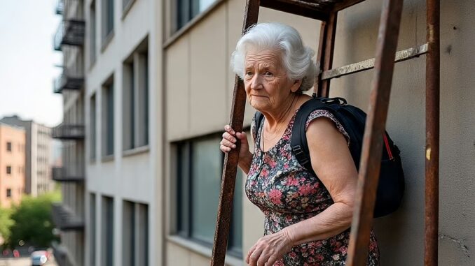 பொதுவாக இது போன்ற சூழலில் பதற்றமடைவது இயல்பு, ஆனால் இந்தப் பாட்டியோ சற்றும் யோசிக்காமல் தனது ஜன்னல் வழியாக வெளியேறி, கட்டடத்தின் வெளிப்புறச் சுவற்றின் வழியாகக் கீழே இறங்கத் துணிந்தார்.