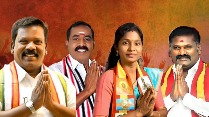 அதே​போல், நாம் தமிழர் கட்சி சார்​பில் சிந்து போட்டியிட்டு தீவிரப் பிர​ச்சா​ரத்​தில் ஈடு​பட்டு வரு​கிறார். புதி​தாக களம் கண்டுள்ள தவெக சார்​பில், அந்​தக் கட்சியின் மாவட்​டச் செயலாளர் தென்​னரசு போட்டியிடுகிறார். இவர்​கள் இளைஞர்களின் ஆதரவு மற்றும் விஜய்​யின் செல்​வாக்கு மாற்றத்தை ஏற்​படுத்​தும் என நம்​பு​கின்​றனர்.