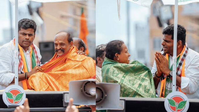 அந்த வகையில், தமிழக பாஜக முன்னாள் தலைவர் அண்ணாமலை இன்று கோவில்பட்டி தொகுதி அதிமுக வேட்பாளர் கடம்பூர் ராஜு மற்றும் விளாத்திகுளம் தொகுதியில் போட்டியிடும் ஆர்.சத்யா ஆகியோரை ஆதரித்து பிரசாரம் மேற்கொண்டார். இது குறித்து அவர் வெளியிட்டுள்ள எக்ஸ் தள பதிவில் தெரிவித்திருப்பதாவது;-