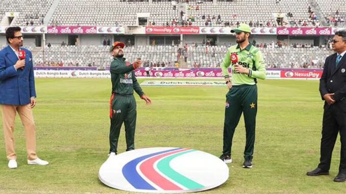 இந்த போட்டிக்கான டாஸ் போடப்பட்டது. அதில் டாஸ் வென்ற வங்காளதேச அணியின் கேப்டன் மெஹிதி ஹசன் பந்துவீச்சை தேர்வு செய்தார். அதன்படி பாகிஸ்தான் அணி முதலில் பேட்டிங் செய்கிறது.