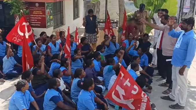 ஒப்பந்த நிறுவனத்தின் இந்த அறிவிப்புக்கு எதிர்ப்பு தெரிவித்து பணி நீக்கம் செய்யப்பட்ட தூய்மைப் பணியாளர்களுக்கு ஆதரவாக மற்ற 50 பணியாளர்களும் பணிகளை புறக்கணித்து மருத்துவமனை வளாகத்திலேயே உள்ளிருப்புப் போராட்டத்தில் ஈடுபட்டனர்.