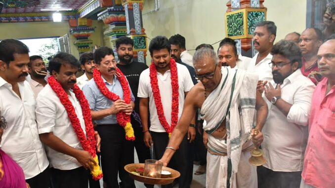 அந்தத் தேர்தலில் பெரு வெற்றிப் பெற்றதால் இந்த முறையும் சென்டிமென்டாக அதே இடத்திலிருந்து பிரசாரத்தை தொடங்கியிருக்கிறார். மேலும், பிரசாரத்தை தொடங்குவதற்கு முன்பு அருகே இருக்கும் செங்கேணி அம்மன் கோவிலில் உதயநிதி, தயாநிதி மாறன், சிற்றரசு ஆகியோர் சிறப்பு வழிபாட்டில் ஈடுபட்டனர்.