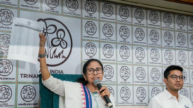 இந்நிலையில், அகில இந்திய திரிணாமுல் காங்கிரஸ் கட்சி, மேற்கு வங்காள சட்டசபை தேர்தலில் போட்டியிடும் 291 தொகுதிகளுக்கான வேட்பாளர் பட்டியலை இன்று வெளியிட்டு உள்ளது. மீதமுள்ள 3 தொகுதிகள் கூட்டணிக்கு ஒதுக்கப்பட்டு உள்ளது. இதன்படி, பவானிபூர் தொகுதியில், சட்டசபை எதிர்க்கட்சி தலைவரான சுவேந்து அதிகாரியை எதிர்த்து மம்தா பானர்ஜி போட்டியிடுவார். வேட்பாளர் பட்டியலை மம்தா பானர்ஜி வெளியிட்டபோது, அக்கட்சியின் எம்.பி. அபிஷேக் பானர்ஜியும் கூட நின்றார்.