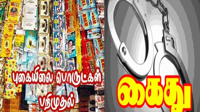 அப்போது அவர்கள் அரசால் தடை செய்யப்பட்ட சுமார் 5.5 கிலோ புகையிலை பொருட்களை விற்பனை செய்வதற்காக பதுக்கி வைத்திருந்தது தெரியவந்தது. இதனையடுத்து மேற்சொன்ன சப்-இன்ஸ்பெக்டர் வழக்குப்பதிவு செய்து விசாரணை செய்து மேற்சொன்ன 2 பேரையும் நேற்று கைது செய்தார். மேலும் அவர்களிடமிருந்து சுமார் 5.5 கிலோகிராம் புகையிலை பொருட்களை கைப்பற்றி உரிய சட்ட நடவடிக்கை எடுத்து வருகிறார்.