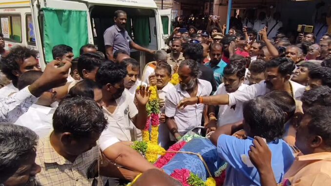 அனைவரின் அஞ்சலிக்குப் பிறகு அந்த கிராமத்தில் உள்ள எரிதகன மேடைக்கு உடல் கொண்டு செல்லப்பட்டது.