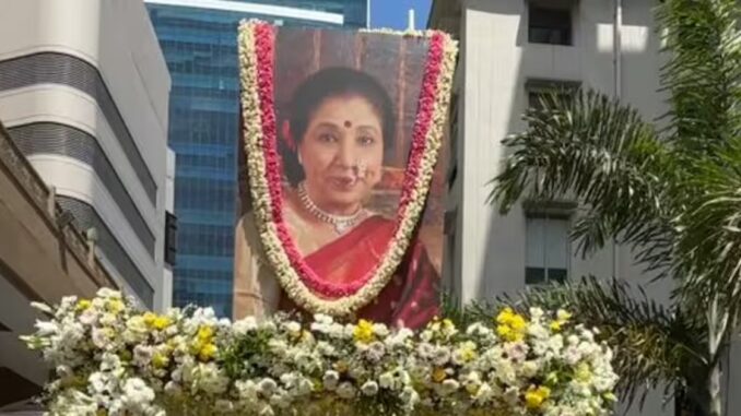 அரசியல்வாதிகள், இசைக் கலைஞர்கள், பாலிவுட் பிரபலங்கள் புடைசூழ ஆஷா போஸ்லேயின் உடல் தாதர் சிவாஜி பார்க் மயானத்திற்கு எடுத்துச் செல்லப்பட்டது. பொதுமக்கள் தெருக்கள் மற்றும் சாலையின் இருபுறமும் நின்று மறைந்த இசைக்குயிலுக்கு தங்களது கண்ணீர் அஞ்சலியை செலுத்தினர். முதலமைச்சர் தேவேந்திர பட்னாவிஸ், மாநில துணை முதலமைச்சர்கள் ஏக்நாத் ஷிண்டே மற்றும் சுனேத்ரா பவார் ஆகியோருடன், நடிகர்கள் விக்கி கௌஷல், ஆமீர் கான் மற்றும் பாடகர் அனு மாலிக் உள்ளிட்டோர், சிவாஜி பார்க் மயானத்தில் தங்கள் இறுதி அஞ்சலியைச் செலுத்தினர்.