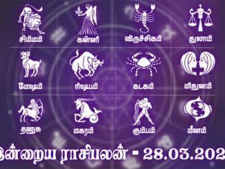மார்ச் 28 கிழமை: சனிக்கிழமை தமிழ் வருடம்: விசுவாவசு தமிழ் மாதம்: பங்குனி நாள் : 14 ஆங்கில தேதி: 28 மாதம்: மார்ச் வருடம்: 2026 நட்சத்திரம்: இன்று மாலை 04.46 வரை […]