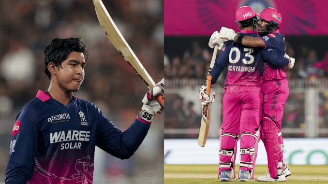 202 ரன்களை துரத்திய ராஜஸ்தான் ராயல்ஸ் அணிக்கு நல்ல துவக்கம் கிடைத்தது. அந்த அணியின் துவக்க வீரர் ஜெய்ஸ்வால் 13 ரன்களில் ஆட்டமிழந்தார். இவருடன் களமிறங்கிய வைபவ் சூர்யவன்ஷி ருத்ர தாண்டவம் ஆடினார். இவர் 28 பந்துகளில் 78 ரன்கள் (8 பவுண்டரிகள், 7 சிக்சர்கள்) விளாசினார். இவருடன் ஆடிய துருவ் ஜூரெல் சிறப்பான ஆட்டத்தை வெளிப்படுத்தினார்.
