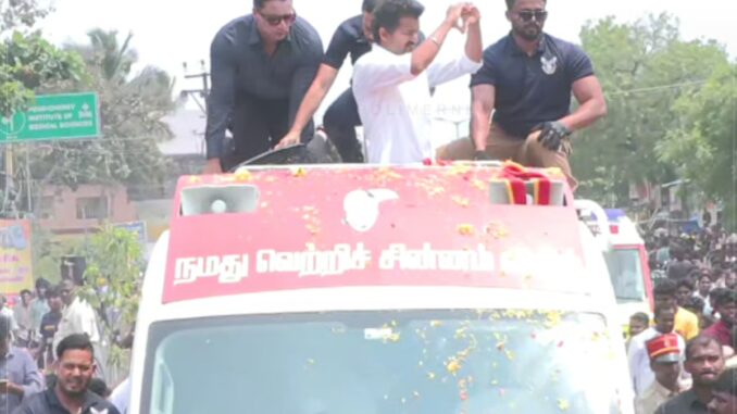 புதுச்சேரி தட்டாஞ்சாவடியில் 12 தொகுதி வேட்பாளர்களை ஆதரித்து தவிக்க தலைவர் விஜய் தேர்தல் பிரச்சாரம் செய்து வருகிறார். காலாப்பட்டு ,உழவர் காரை , லாஸ்பேட்டை, ஊசுடு ,கதிர்காமம், இந்திரா நகர் உள்ளிட்ட 12 தொகுதிகளின் வேட்பாளர்களும் வந்திருந்த நிலையில் வாக்காளர்களுக்கு ஆதரவாக விஜய் இன்று வாக்கு சேகரித்தார்.