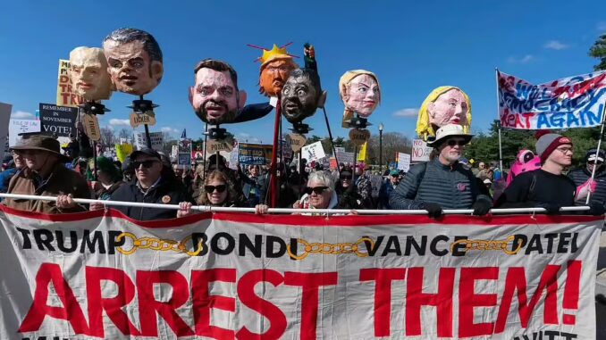 வாஷிங்டன் டிசியின் லிங்கன் மெமோரியல் முதல் நேஷனல் மால் வரை நூற்றுக்கணக்கானோர் அணிவகுத்துச் சென்றனர். “மகுடத்தைக் கீழே போடு, கோமாளியே” போன்ற வாசகங்கள் அடங்கிய பதாகைகளை ஏந்திச் சென்றனர்.லாஸ் ஏஞ்சல்ஸின் போராட்டம் வன்முறையாக மாறியது. போராட்டக்காரர்கள் மீது காவல்துறையினர் கண்ணீர்ப்புகைக் குண்டுகளை வீசினர். பலரைக் கைது செய்துள்ளதாக அதிகாரிகள் தெரிவித்தனர்.no kings protestஅமெரிக்கா தவிர லண்டன், பாரிஸ் மற்றும் ரோம் ஆகிய நகரங்களிலும் போராட்டங்கள் வெடித்தன. லண்டனில் ‘வலதுசாரிப் போக்கை நிறுத்து’ என்ற முழக்கங்கள் எழுப்பப்பட்டன. ரோமில் பிரதமர் ஜியோர்ஜியா மெலோனிக்கு எதிராகவும், ஈரான் மீதான ராணுவ நடவடிக்கைக்கு எதிராகவும் மக்கள் வீதியில் இறங்கினர்.இந்தப் போராட்டங்களை குடியரசுக் கட்சித் தலைவர்கள் கடுமையாக விமர்சித்துள்ளனர். வெள்ளை மாளிகை செய்தித் தொடர்பாளர் அபிகாயில் ஜாக்சன் கூறுகையில், “இவை இடதுசாரி அமைப்புகளால் திட்டமிடப்பட்டவை. பொதுமக்களின் உண்மையான ஆதரவு இதற்கு இல்லை” எனத் தெரிவித்தார். தேசிய குடியரசுக் கட்சி கமிட்டியும் (NRCC) இந்தப் போராட்டங்களை “அமெரிக்காவை வெறுக்கும் பேரணிகள்” எனக் குறிப்பிட்டுள்ளது.