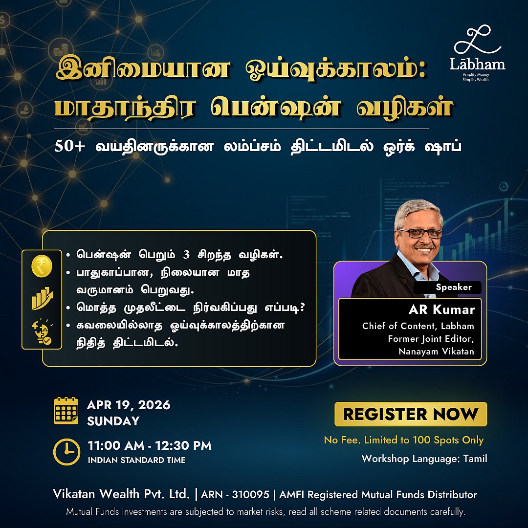 உங்கள் இனிமையான ஓய்வுக்காலத்தை உறுதி செய்ய இப்போதே லிங்க் க்ளிக் செய்து இப்போதே முன்பதிவு செய்யுங்கள் – https://labham.money/events/webinar-apr19-2026?utm_source=vikatan_com&utm_medium=article&utm_campaign=webinar_apr19_2026