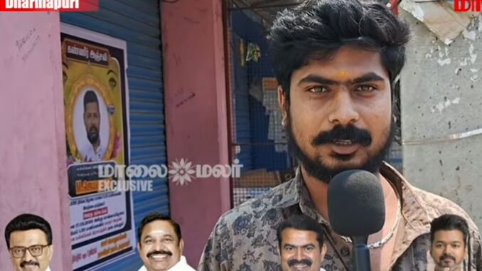 அந்த வகையில், தருமபுரி தொகுதியில் 40-க்கும் மேற்பட்ட சராசரி பொதுமக்களிடம் Vox Pop நடத்தப்பட்டதில் திமுகவிற்கு 4 பேரும், அதிமுகவிற்கு 16 பேரும், தமிழக வெற்றிக்கழகத்திற்கு 10, நாம் தமிழர் கட்சிக்கு 10 பேரும் ஆதரவு தெரிவித்துள்ளனர்.